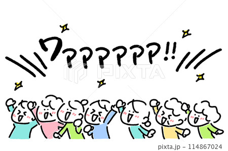 卡通風格的各個年齡段的男女歡呼雀躍,熱情歡呼上半身簡單可愛的線條畫插圖