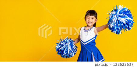 一個女孩在跳啦啦隊舞。歡呼聲。複製空間。