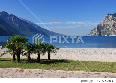 Lakeshore of Lake Garda in the small village of Bardolino Veneto Italy