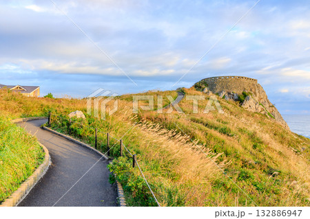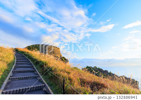 秋日清晨的陽光灑在八戶市的足重崎展望台上,青森縣