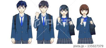 動漫風格的插圖,描繪了背著背包或書包、面帶微笑的高中生或初中生,背景為白色。