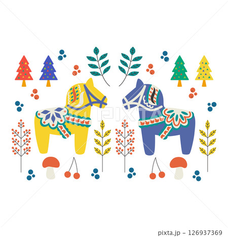 Image of herd of colorful lions on white background. Wildlife Animals. Generative AI, Illustration.