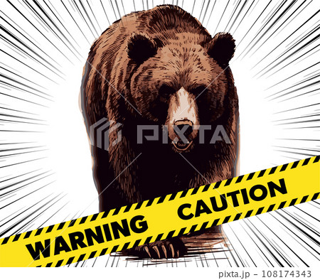 「謹防熊出沒」海報設計,帶有真實的熊觸感、集中線和危險膠帶