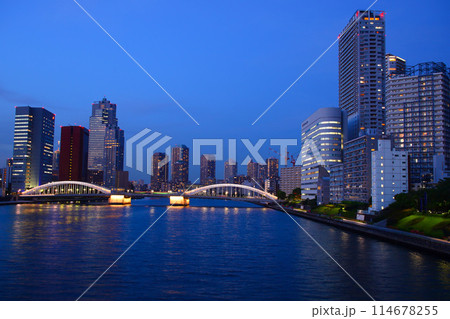 東京都中央區墨田河上的城市景觀町立大橋