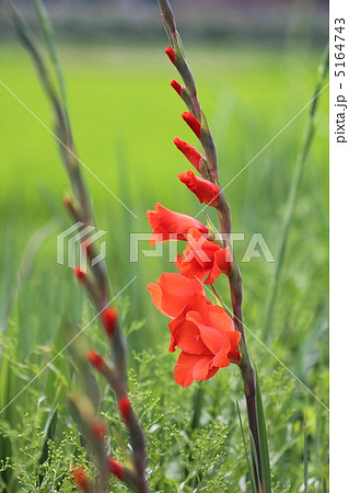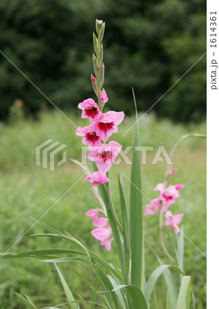 粉紅色的唐菖蒲,花朵排列在直莖上