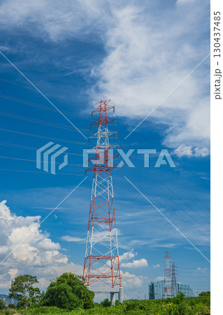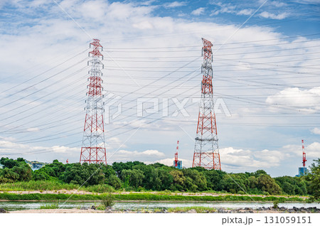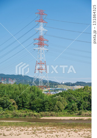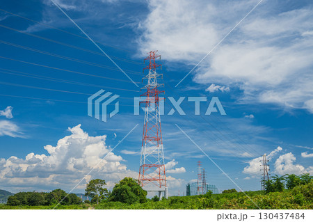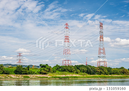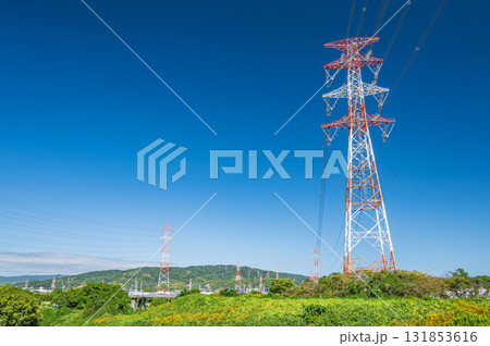 大阪府高槻市淀川河畔的輸電線塔