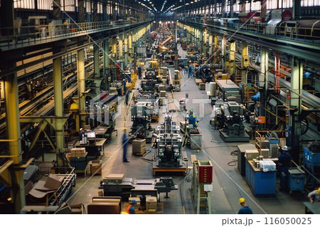 This image depicts a large, modern industrial assembly line with various machinery, by Generative AI