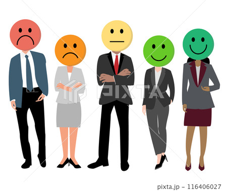 customer satisfaction with emoticon face of satisfied and unsatisfied experience for businessman and businesswoman