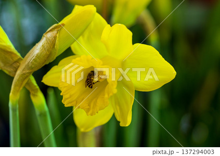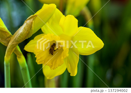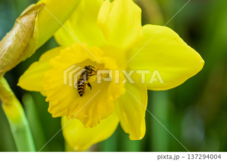 蜜蜂採蜜於黃色波斯菊花 bee & yellow flower 黄色の花の花粉採集蜂