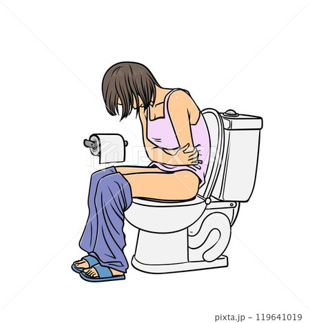 illustration of the woman sitting and on toilet
