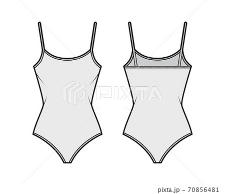 Cotton-jersey tank bodysuit technical fashion illustration with fitted knit body, sleeveless. Flat outwear cami
