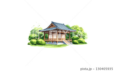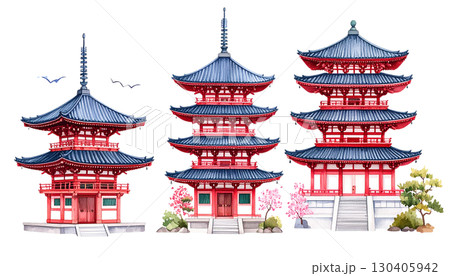 Hand Drawn Japanese and Chinese style pavilions or pagodas in flat style