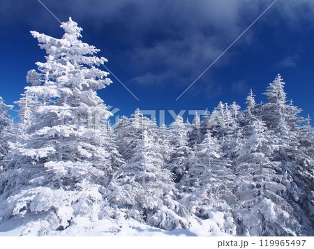 八岳連峰北小岳的冬季風景(樹木與陽光)