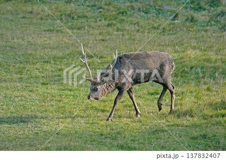 走在草原上的蝦夷鹿(北海道鶴居村)