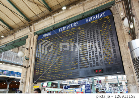 Gare du Nord車站大樓的玻璃牆上掛著一個大金鐘