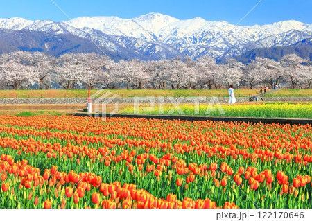 【富山縣】朝日船川春天四重奏(盛開的櫻花、鬱金香、北阿爾卑斯山)