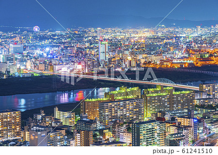 大阪北都市風景夜景(淀川、十秀橋)