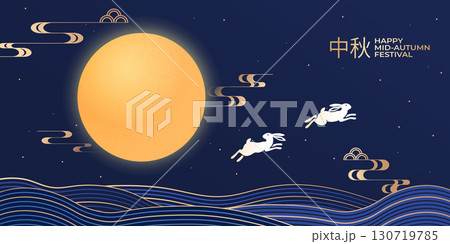Mid-Autumn Festival poster, moon and cute rabbit.