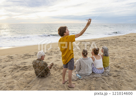 Mexico, Baja, Pescadero, Three generation family having picnic on beach