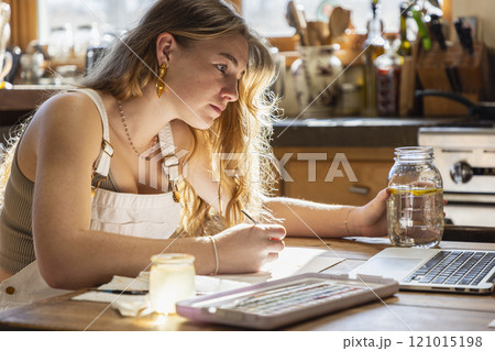Portrait of grandmother and granddaughter (16-17) looking through window