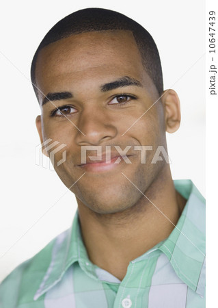 Portrait of teenage boy (16-17) and girl (16-17) with young friend, studio shot