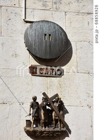 9th Station of the Cross in Via Dolorosa at the entrance to the Coptic Orthodox Patriarchate, the Coptic Monastery of St. Anthony, Church of the Holy Sepulcher in Jerusalem, Israel