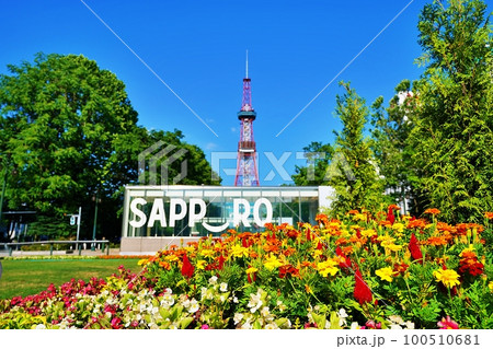 北海道千歲市陽光明媚的日子裡的草坪種植場