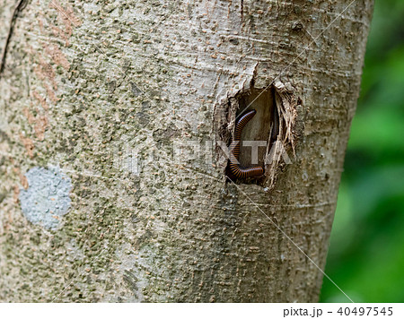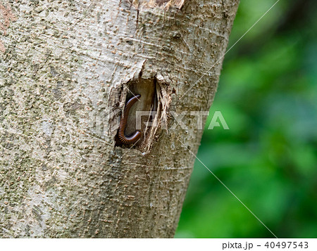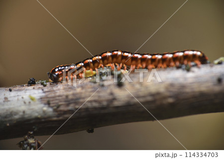 爬行在木頭上的霍氏繞馬陸特寫