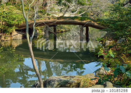 [東京]晴朗的日子裡六義園的對稱秋葉(千鳥橋)