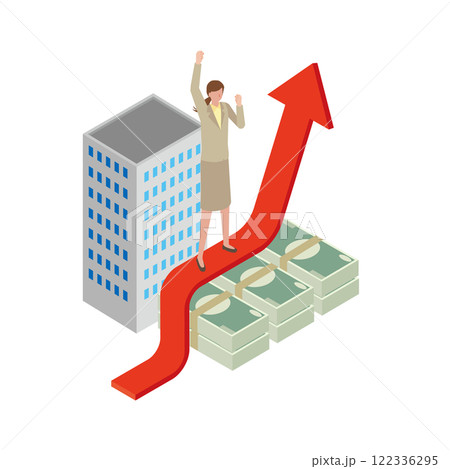 一位女性在攀登財富階梯時慶祝成功 | 一家透過 HOP STEP JUMP 描繪成長和成就的企業