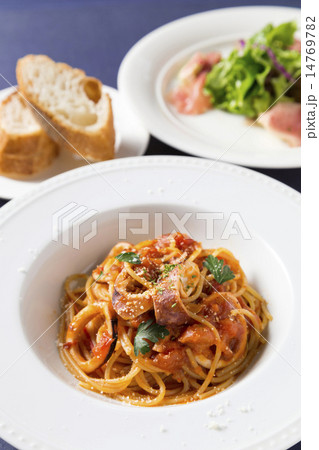 一位年輕的亞洲女性在咖啡館吃義大利麵作為午餐