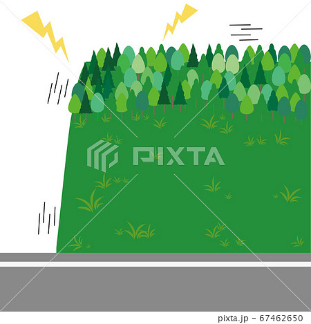 插圖的岩石從山坡上掉下來,滑坡的跡象