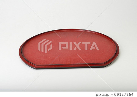 漆半月托盤和方形朱紅色和黑色圖案的插圖材料