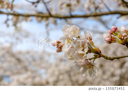 櫻花盛開;染井吉野櫻花樹大約有一半已經開花。