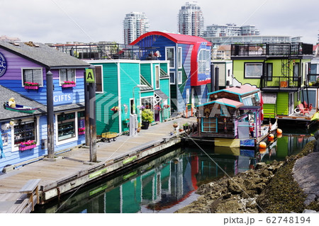 毗鄰福爾斯河的公寓大樓和停泊在格蘭維爾島的遊艇(加拿大溫哥華)