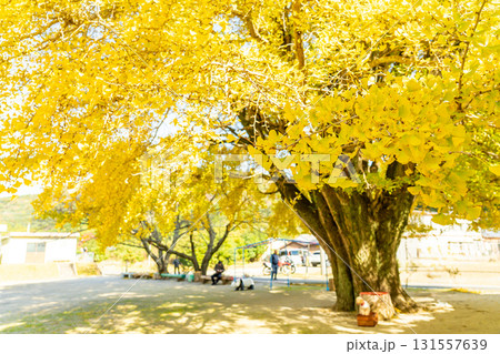 三重縣南伊勢町舊保原小學的大銀杏樹閃耀著金光。