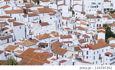 卡薩雷斯白色村莊擁擠的房屋[西班牙/安達盧西亞]