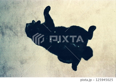 黑貓雙腿叉開,放在肚臍上睡覺,在睡夢中跳舞