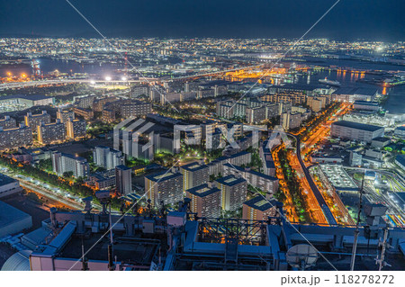 從大阪府咲島大樓展望台眺望南港和大阪港的夜景