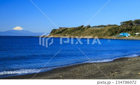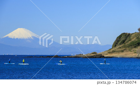 從相模灣眺望白雪皚皚的紫藤花