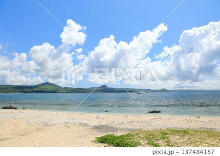 陽光明媚的日子裡的沙灘和櫻島自然風光