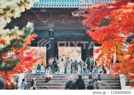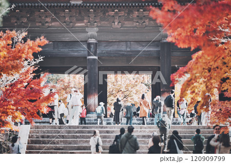 京都市南禪寺三門在深秋行走的秋葉上很美