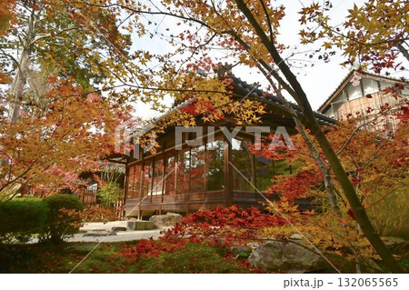 從南庭園眺望秋天的京都天壽庵書院