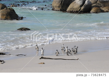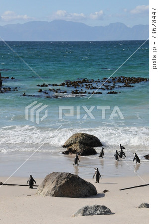 開普企鵝(非洲企鵝)幼崽和成年企鵝。水彩風格插圖。