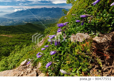富士山山道上盛開的山螢桔梗。