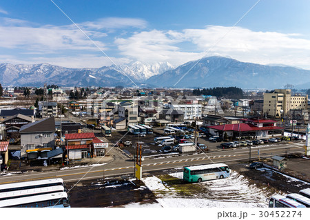 從Minami Uonuma市觀測所看見的Hachikai和Minami Uonuma風景在春天