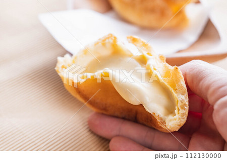 手裡拿著奶油泡芙