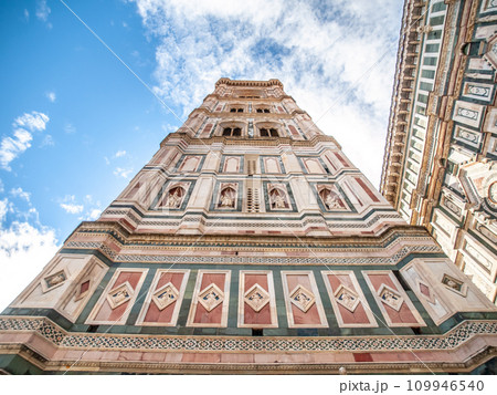 Bell tower of Catherdal, Cattedrale di Santa Maria del Fiore or Il Duomo di Firenze, with ornamental mosaic, Firenze, Tuscany, Italy