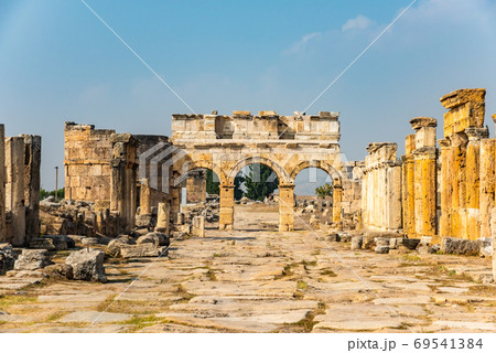 Hierapolis ancient city ruins Pamukkale Turkey. UNESCO world heritage site