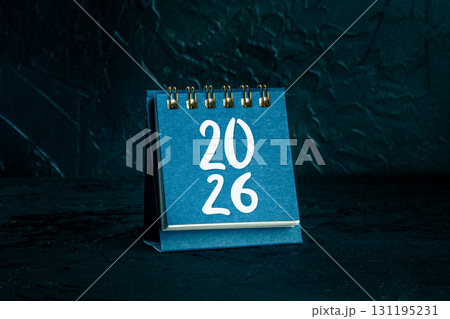 2026 Calendar. A desk calendar for the next year, shot on a black background